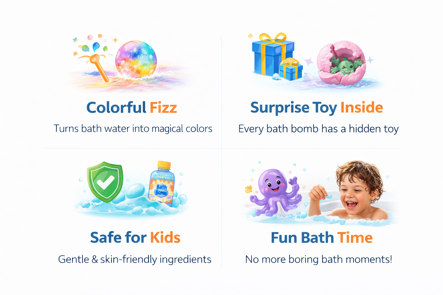 Colorful fizz + hidden toy inside every bath bomb your kids will love 💙